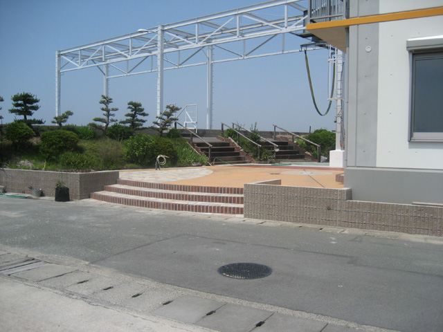 入り口階段と土留めブロック
